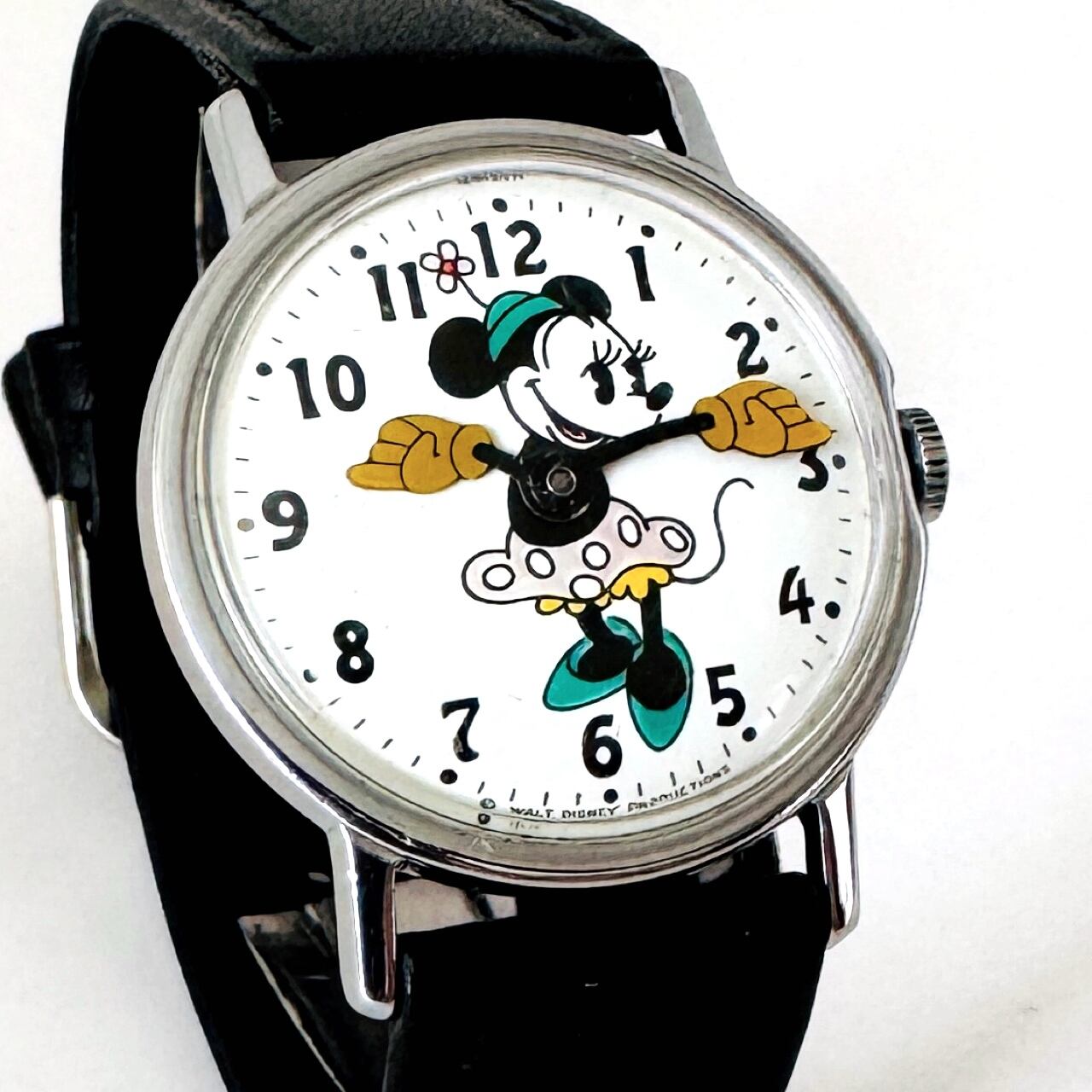 機械式手巻き、盤面には可愛らしいミニーが描かれています。
