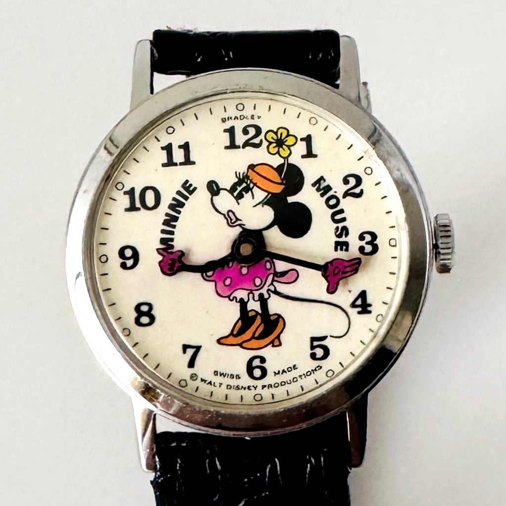 機械式手巻き、盤面には可愛らしいパイアイミニーーが描かれています。